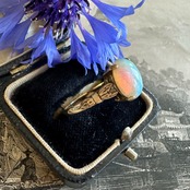 8.8mmのクリーミーなカボションオパールリングは、まるで宇宙の星がその内部に宿るかのような神秘的な輝きを放っています。(写真ですとわかりにくいですよね、、、)