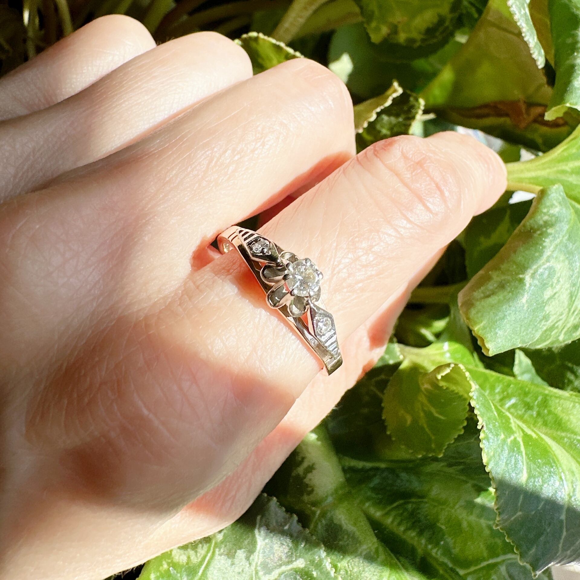 (母の日スペシャルプライス)旧ソ連バターカップダイヤモンドソリテールリング