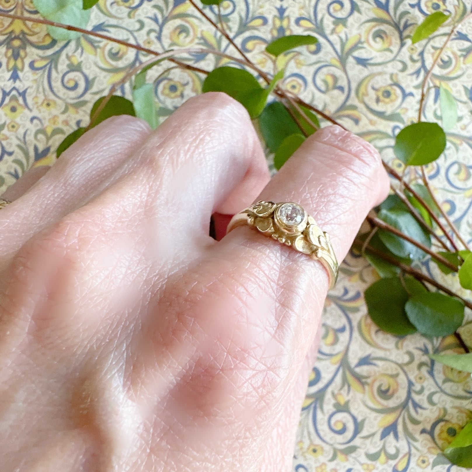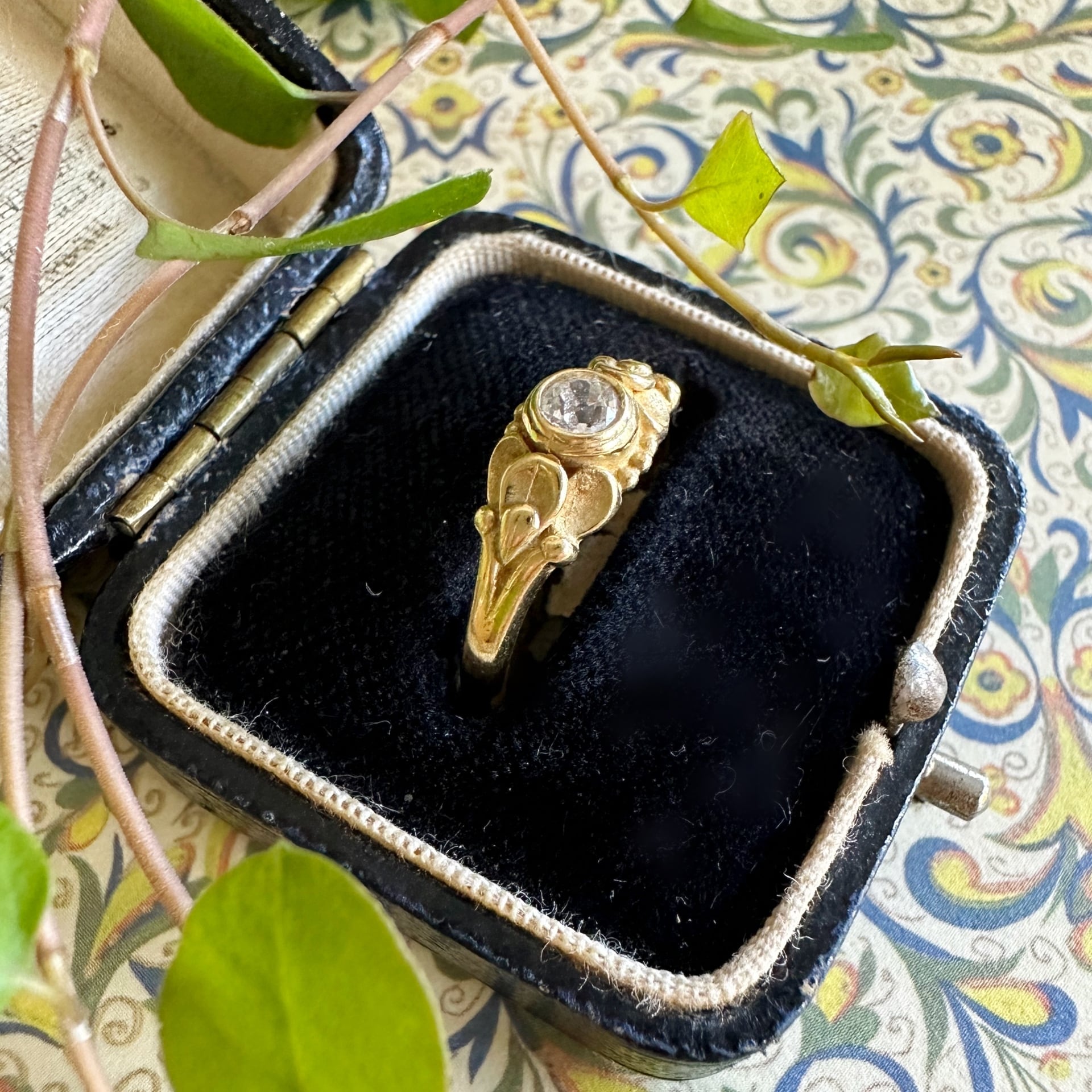 ジャポニズムの影響を感じる19世紀末のオープンキュレットのオールドヨーロピアンカットダイヤモンドリング。