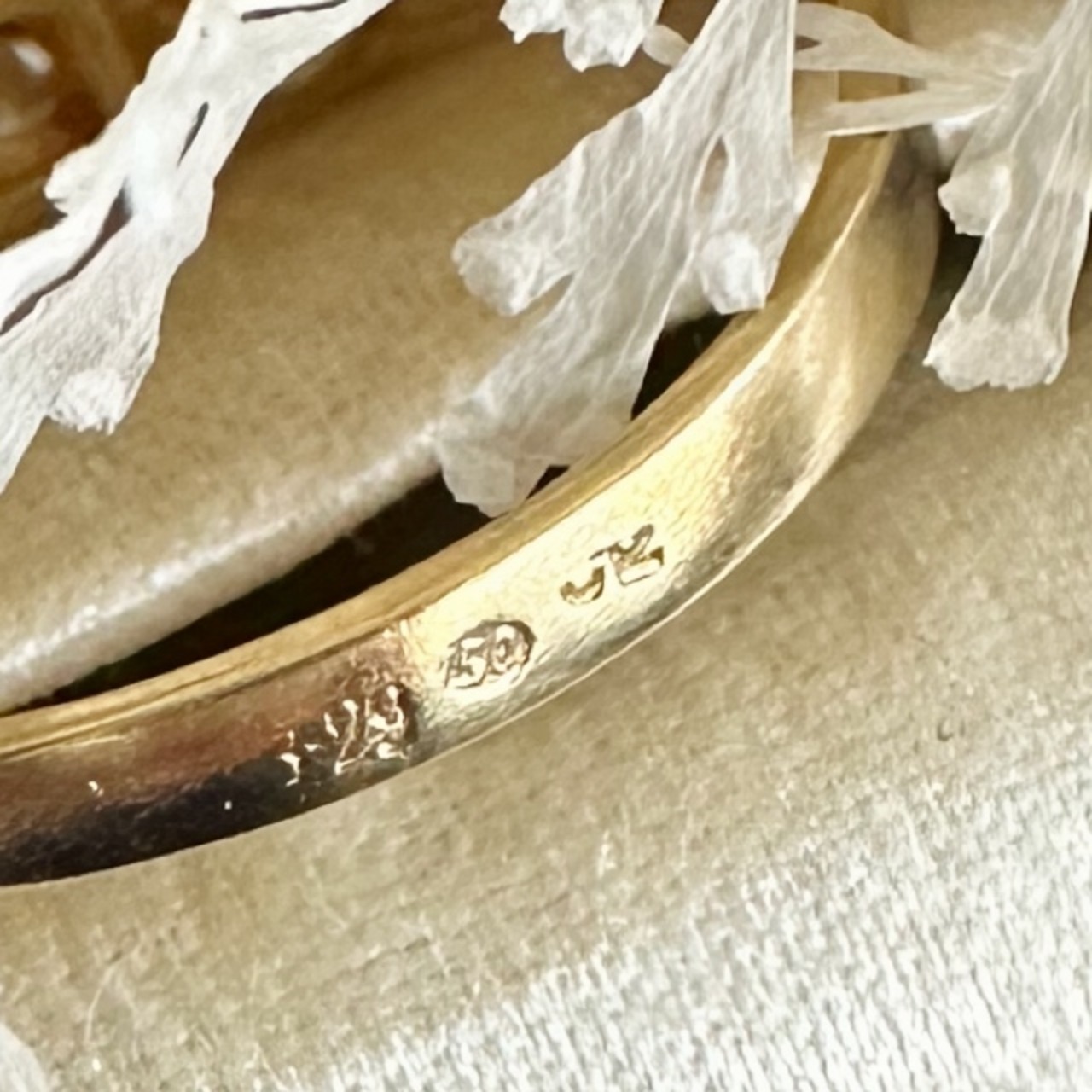 アームの外側には刻印がありますが、残念ながら生産国は不明です。それでも、このリングの素晴らしさは言うまでもなく、独特の魅力を放っていますね。