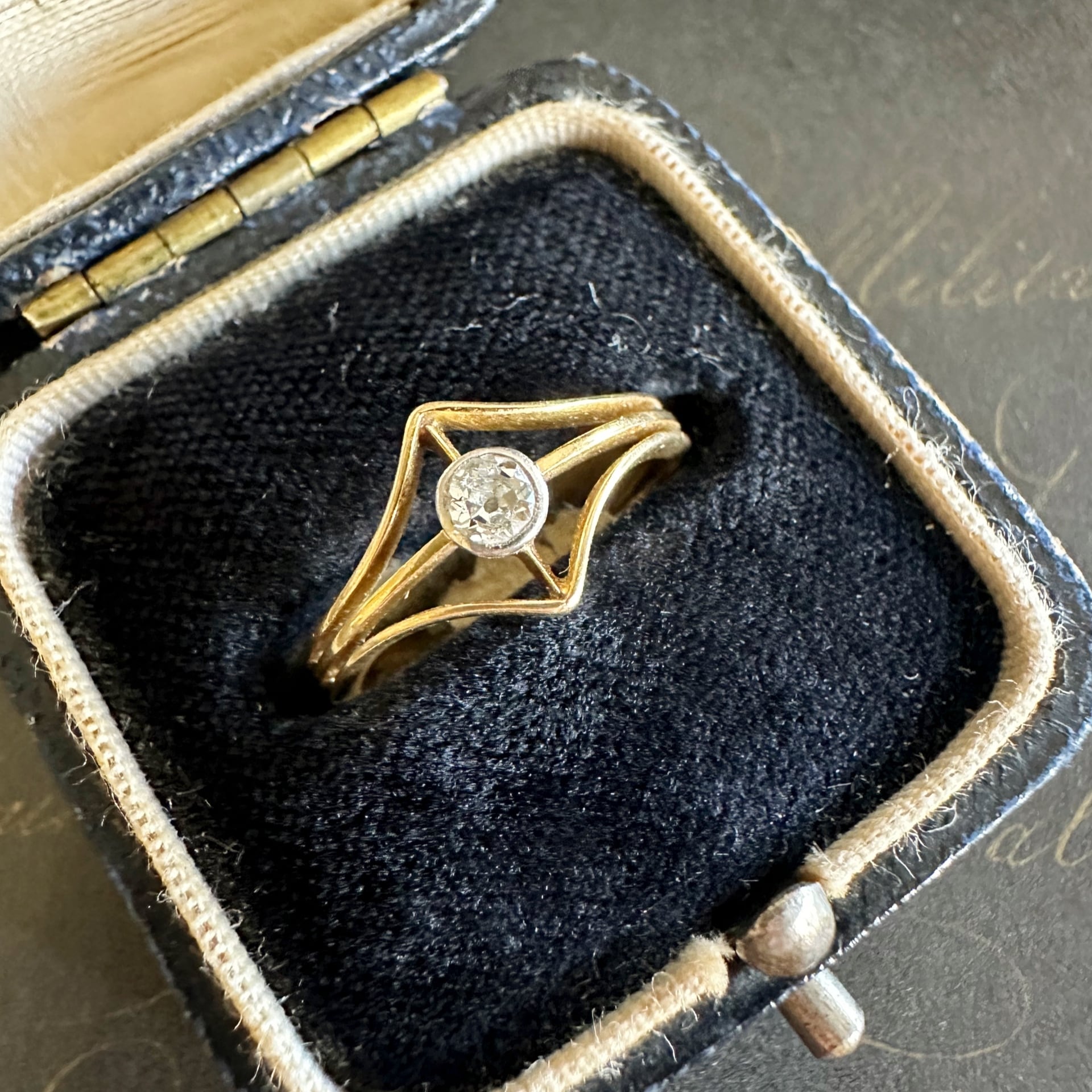 星座のようなオープンキュレットのオールドカットダイヤモンドリング