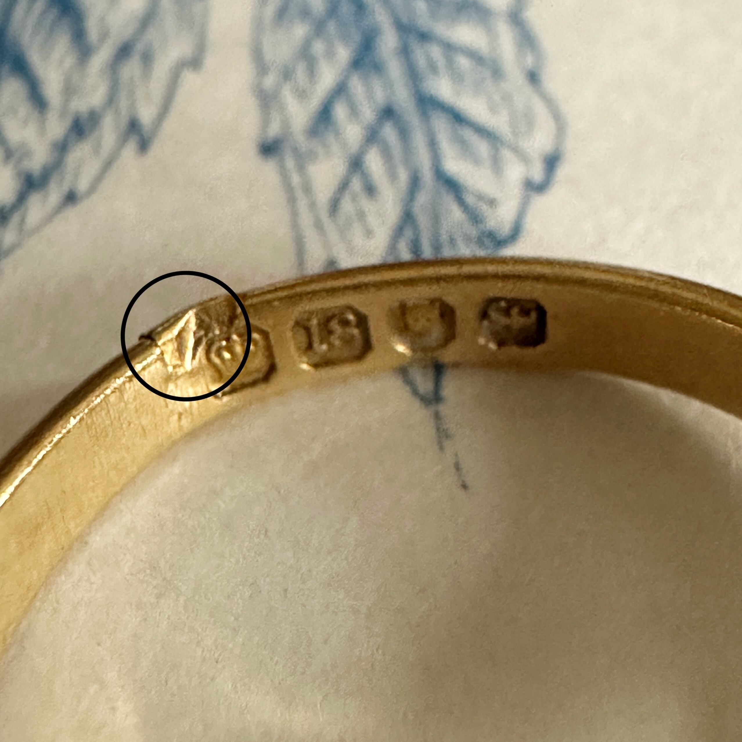 ※ 123年程前の古いお品になりますので、経年によるアンティーク品特有の微小なスレなどルーペで見てわかる程度にございます。写真にもありますように、ホールマークの箇所にお直しの跡がありアームが少し歪になってますご承知おき下さい。