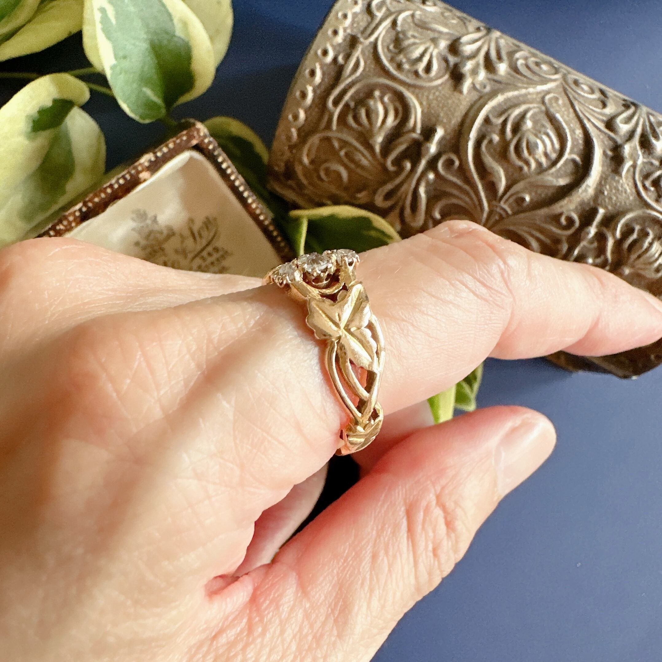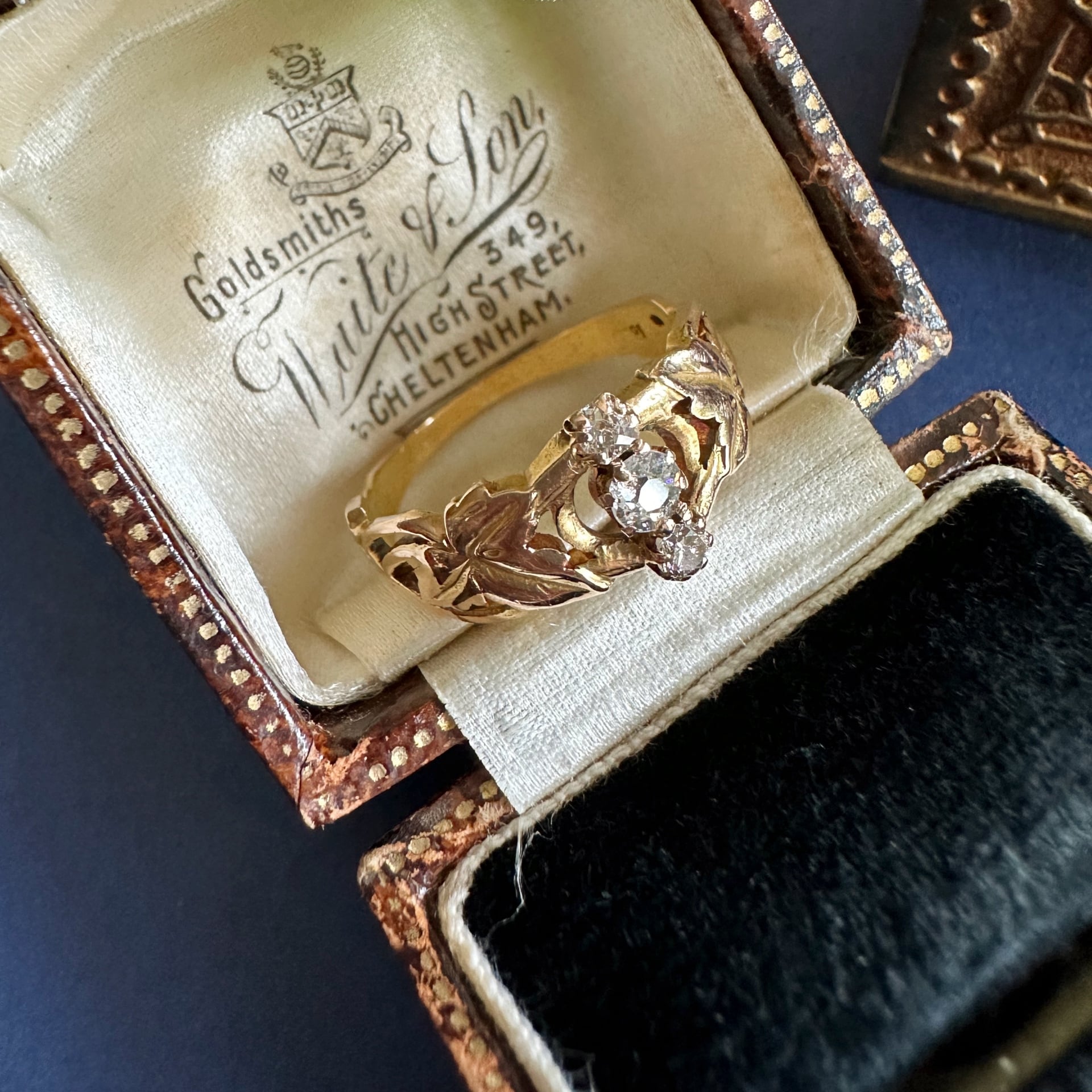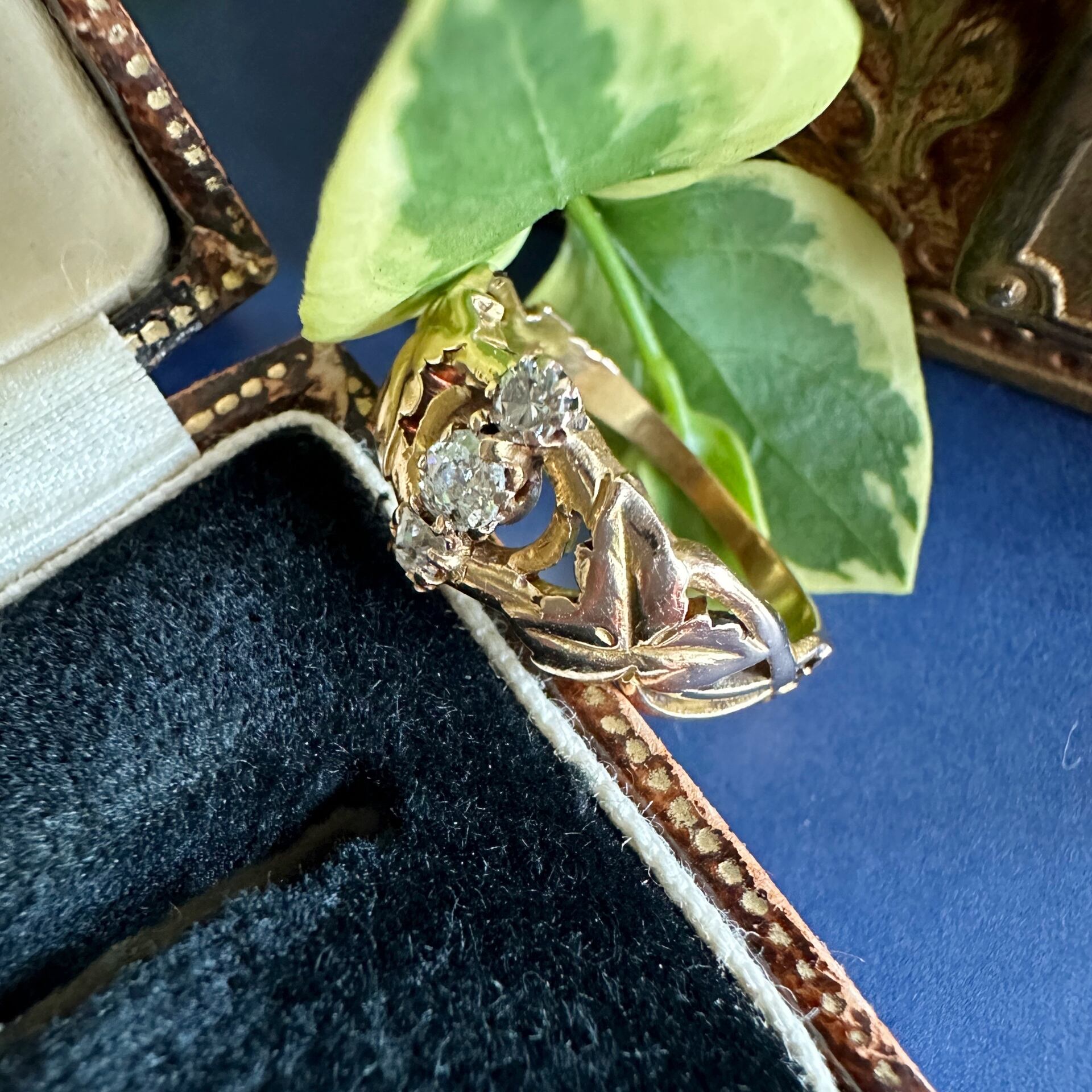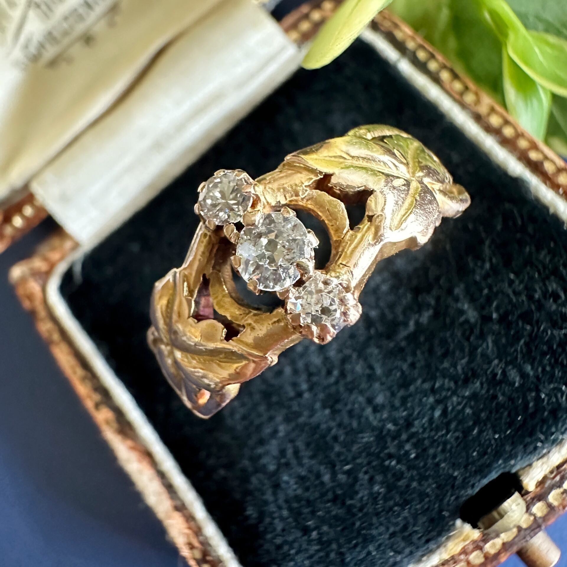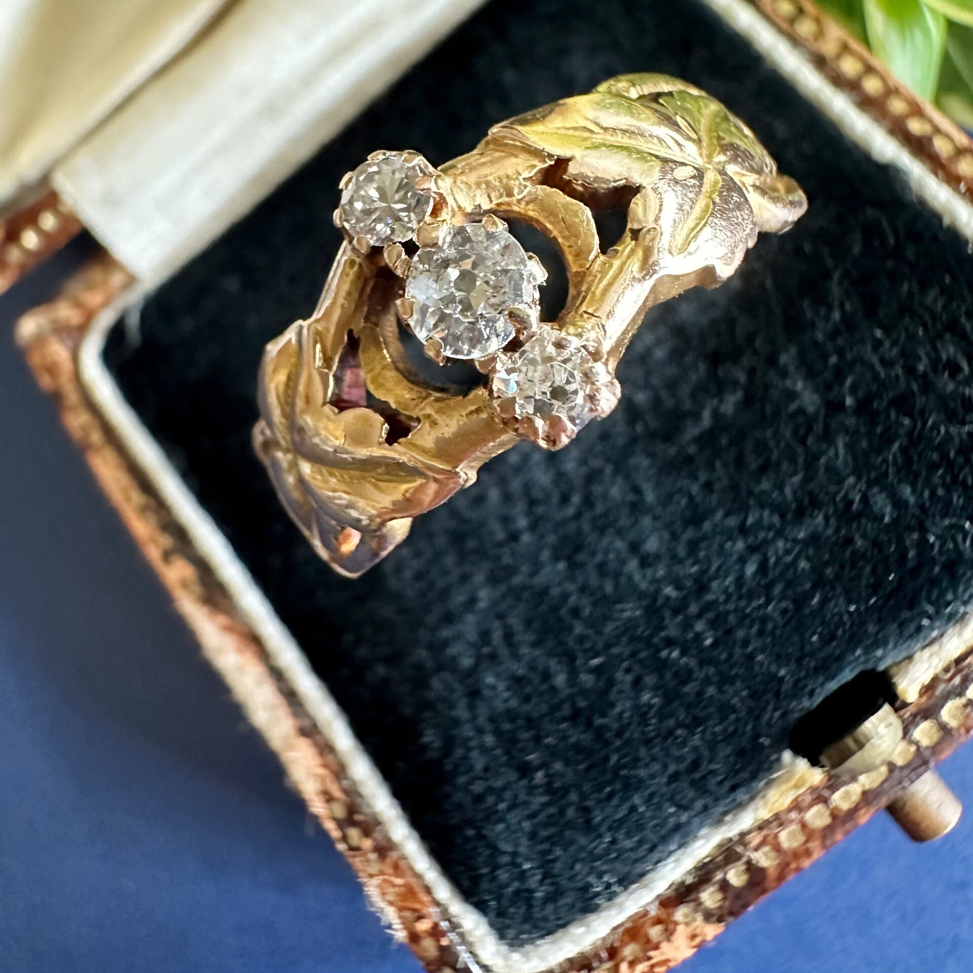 オールドカットダイヤモンドスリーストーンアイビーリング