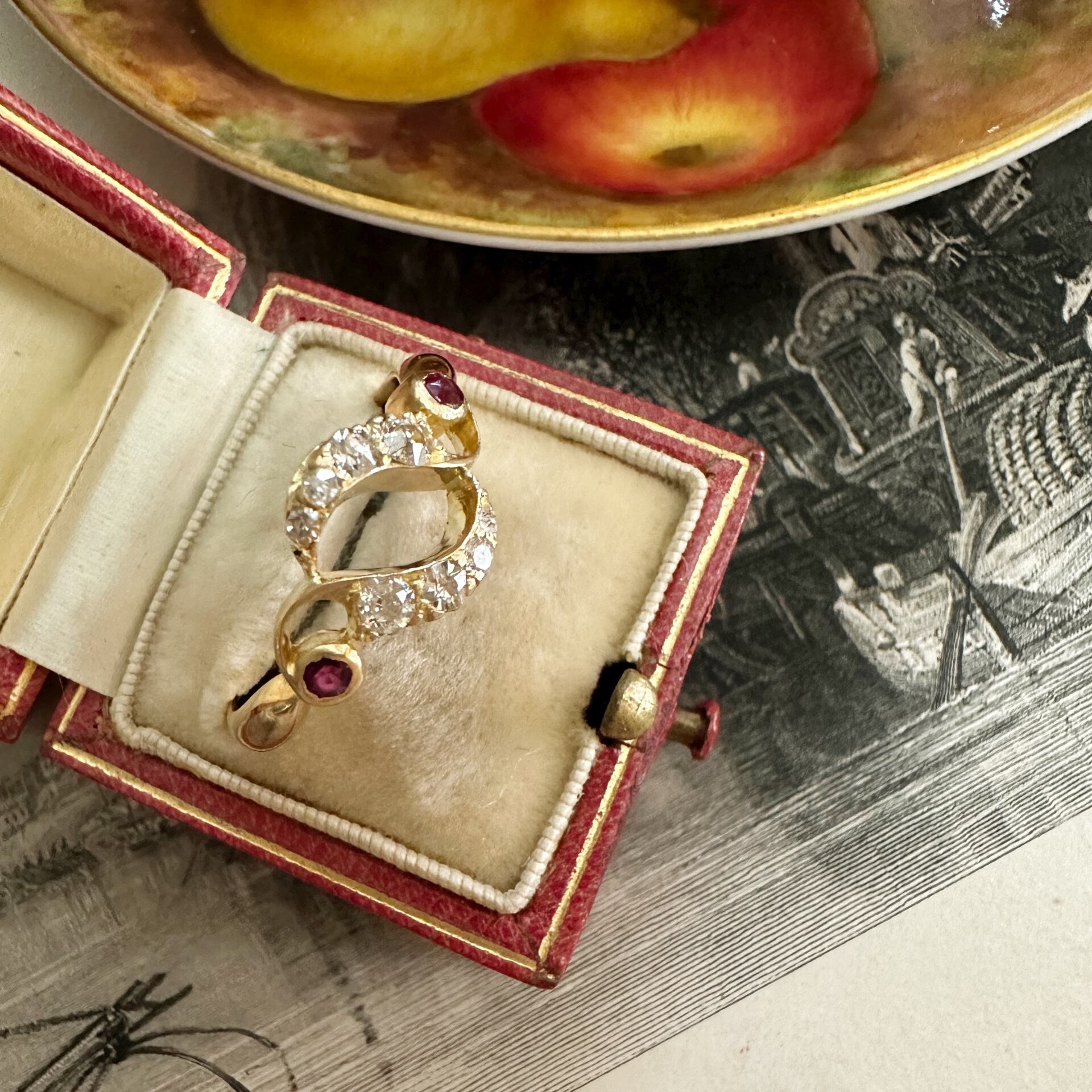 オールドカットダイヤモンド&ルビーエドワーディアンリング