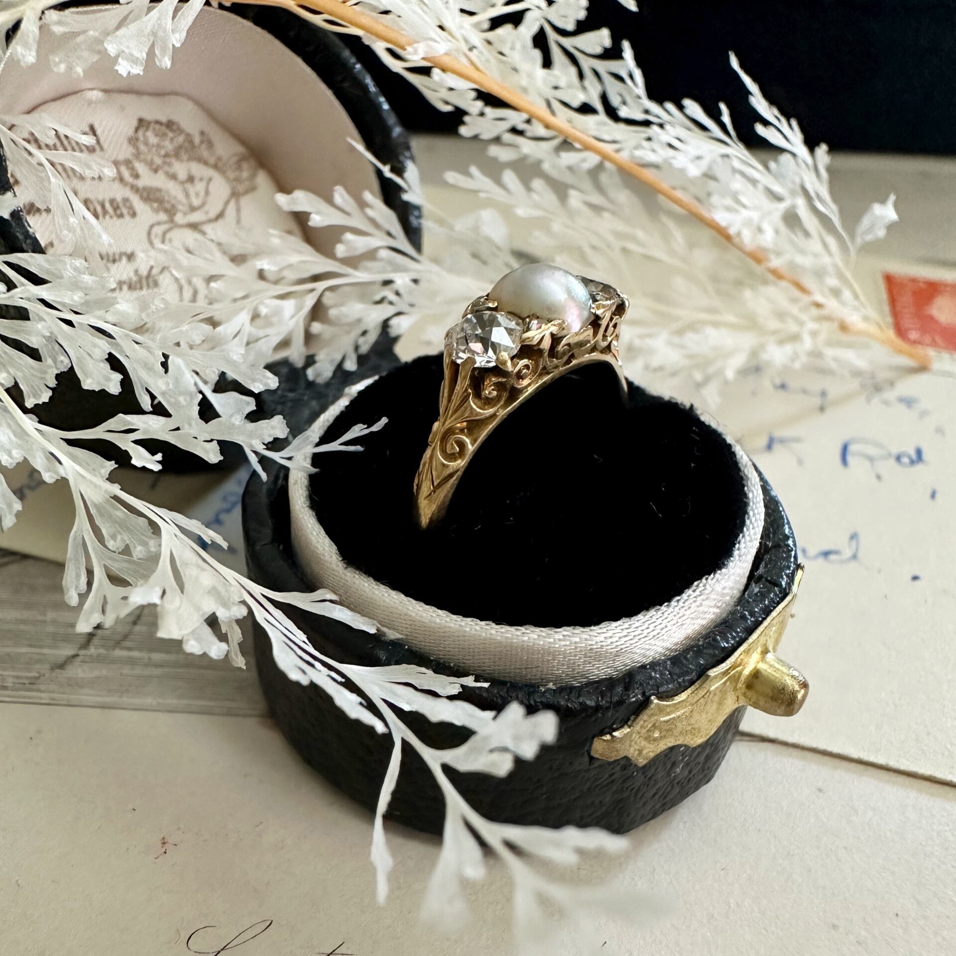 天然パールとオールドヨーロピアンカットダイヤモンドエドワーディアンリング