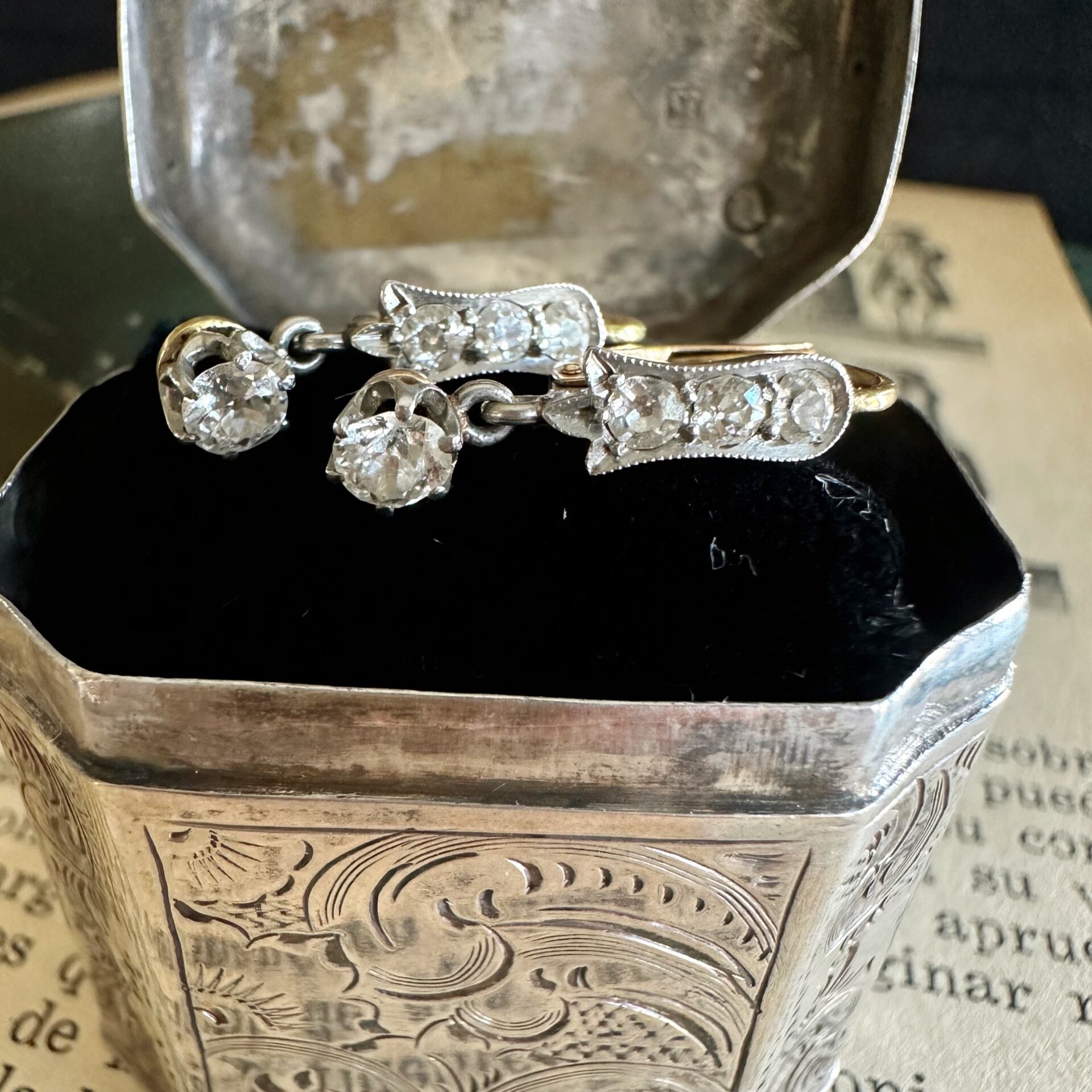 オールドヨーロピアンカットダイヤモンド鈴蘭のようなドロップピアス