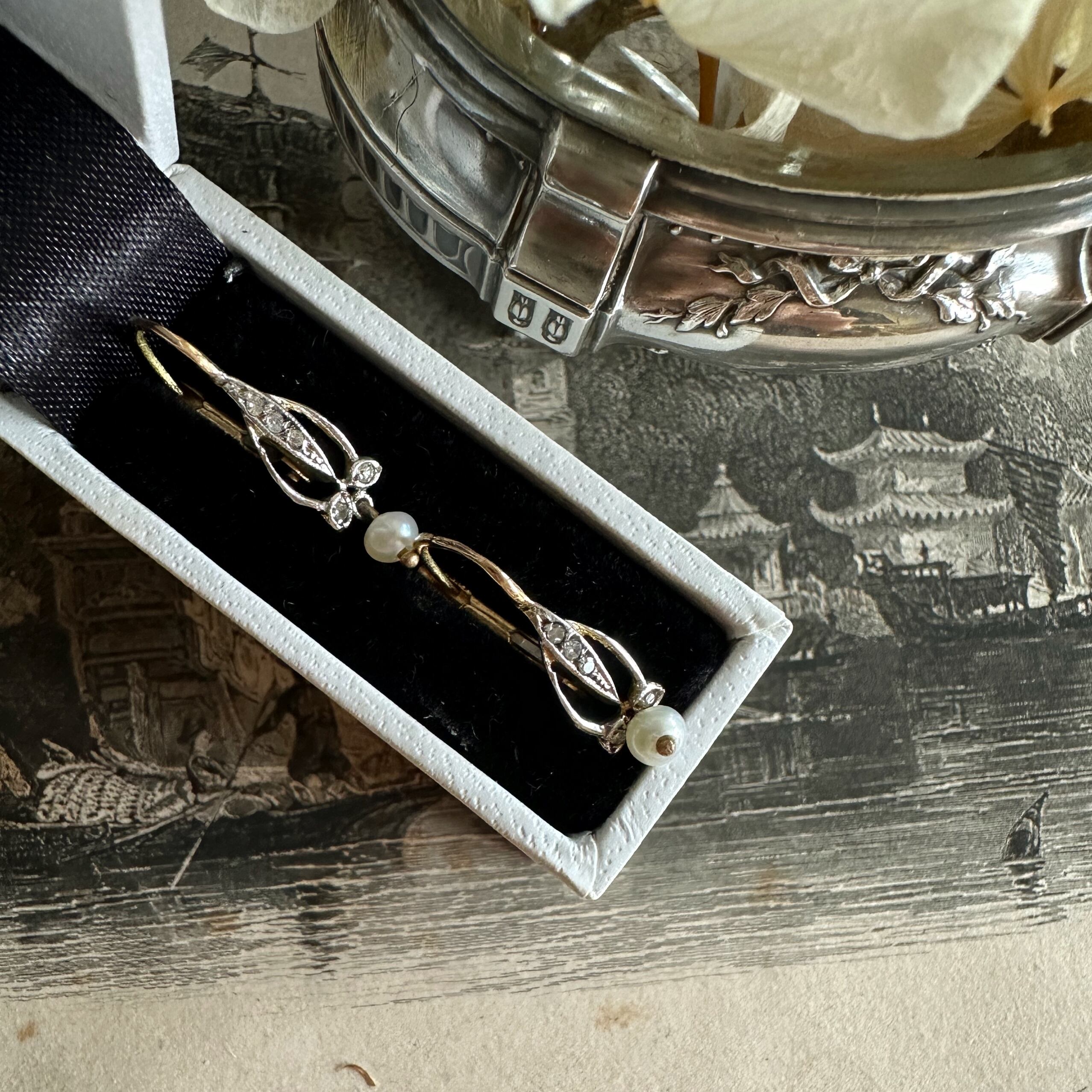 ナチュラルパール&ダイヤモンドのベルエポックピアス