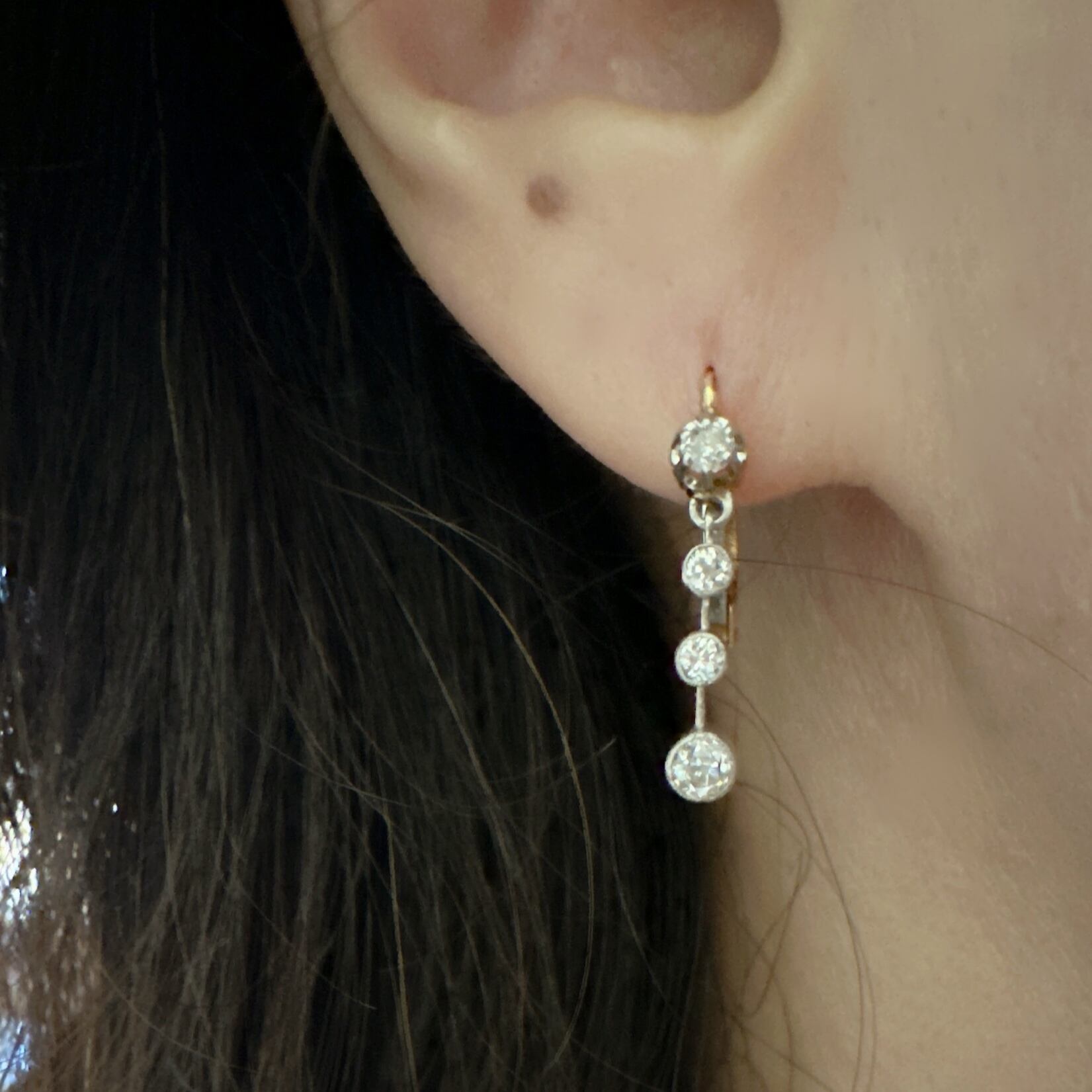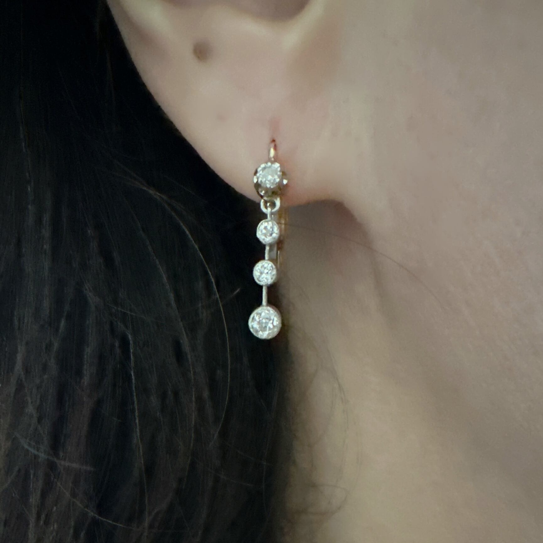 揺らめくオールドカットダイヤモンドのフレンチピアス