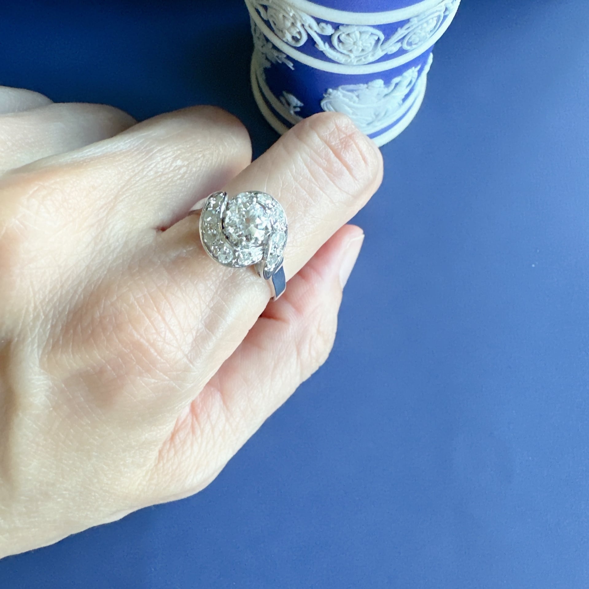 通常、この時代のダイヤモンドカットはシャープで精巧なブリリアントカットが主流でしたが、このリングにはオールドヨーロピアンカットが採用されていて、時代の変わり目を感じさせるユニークなチョイスで素敵だなぁと感じます。