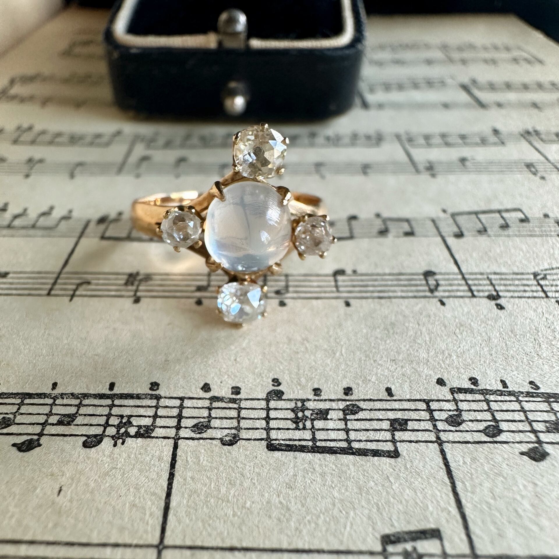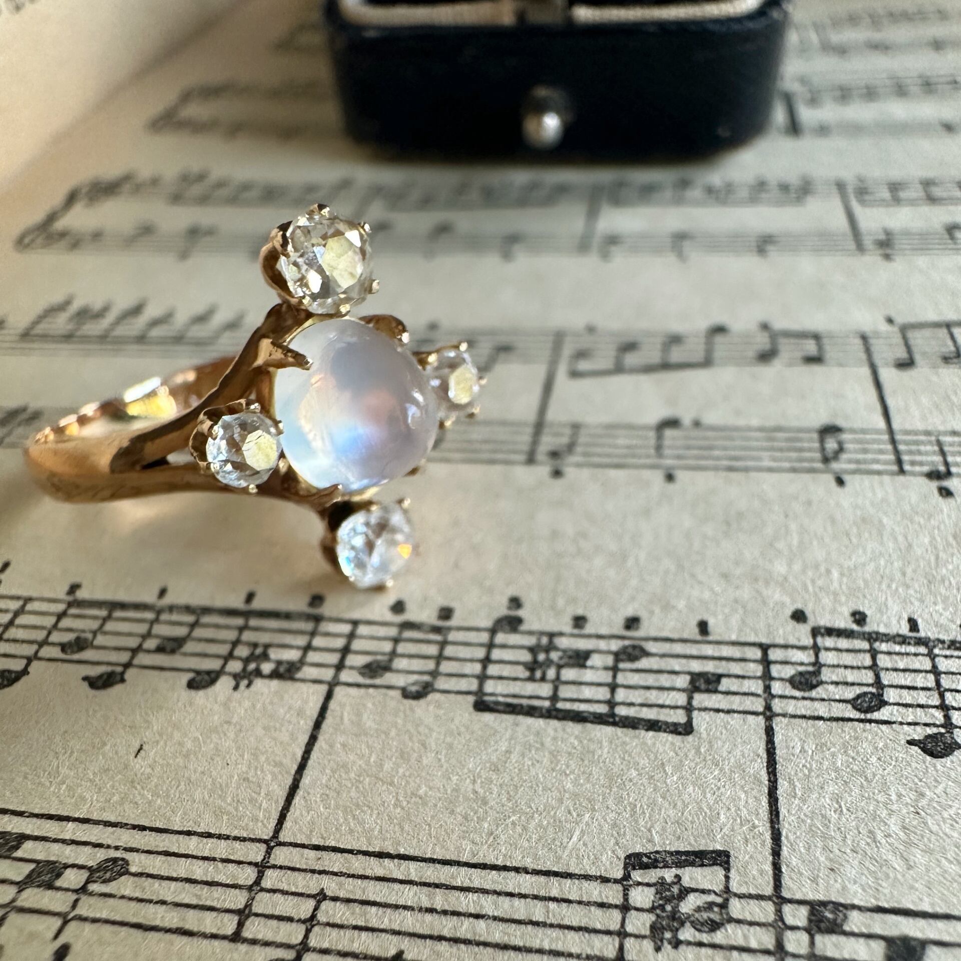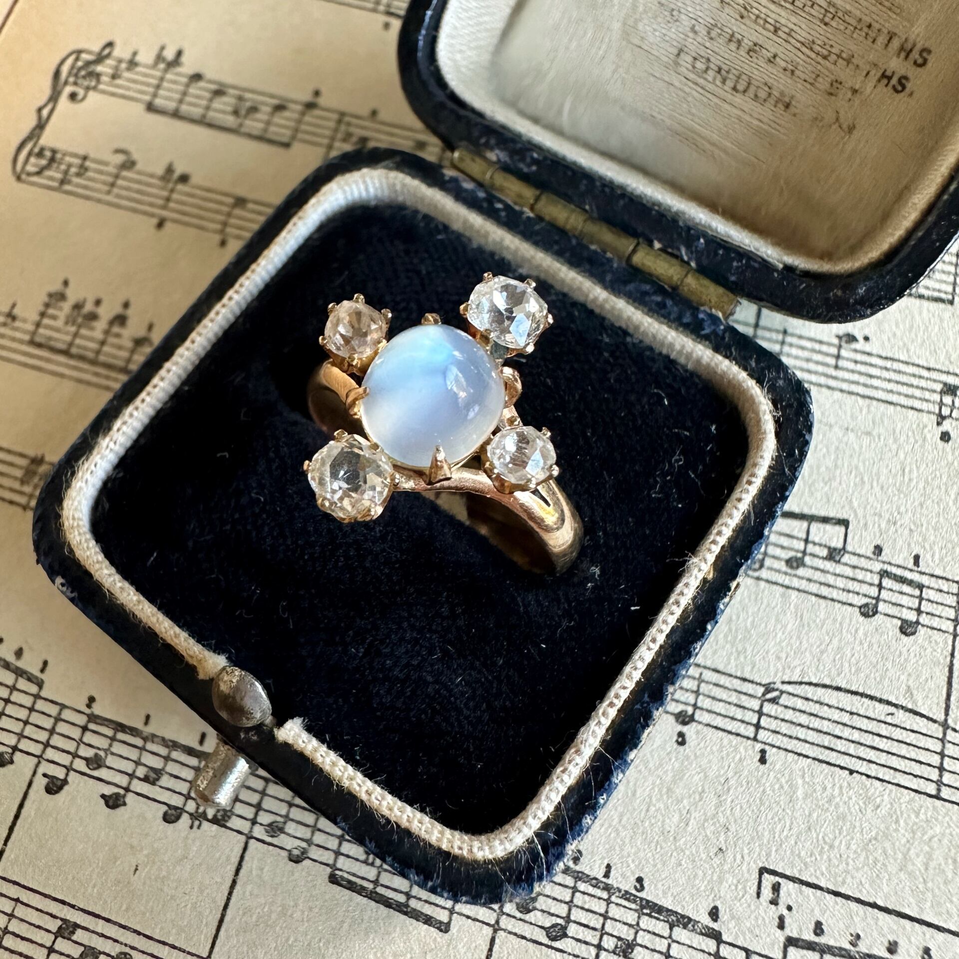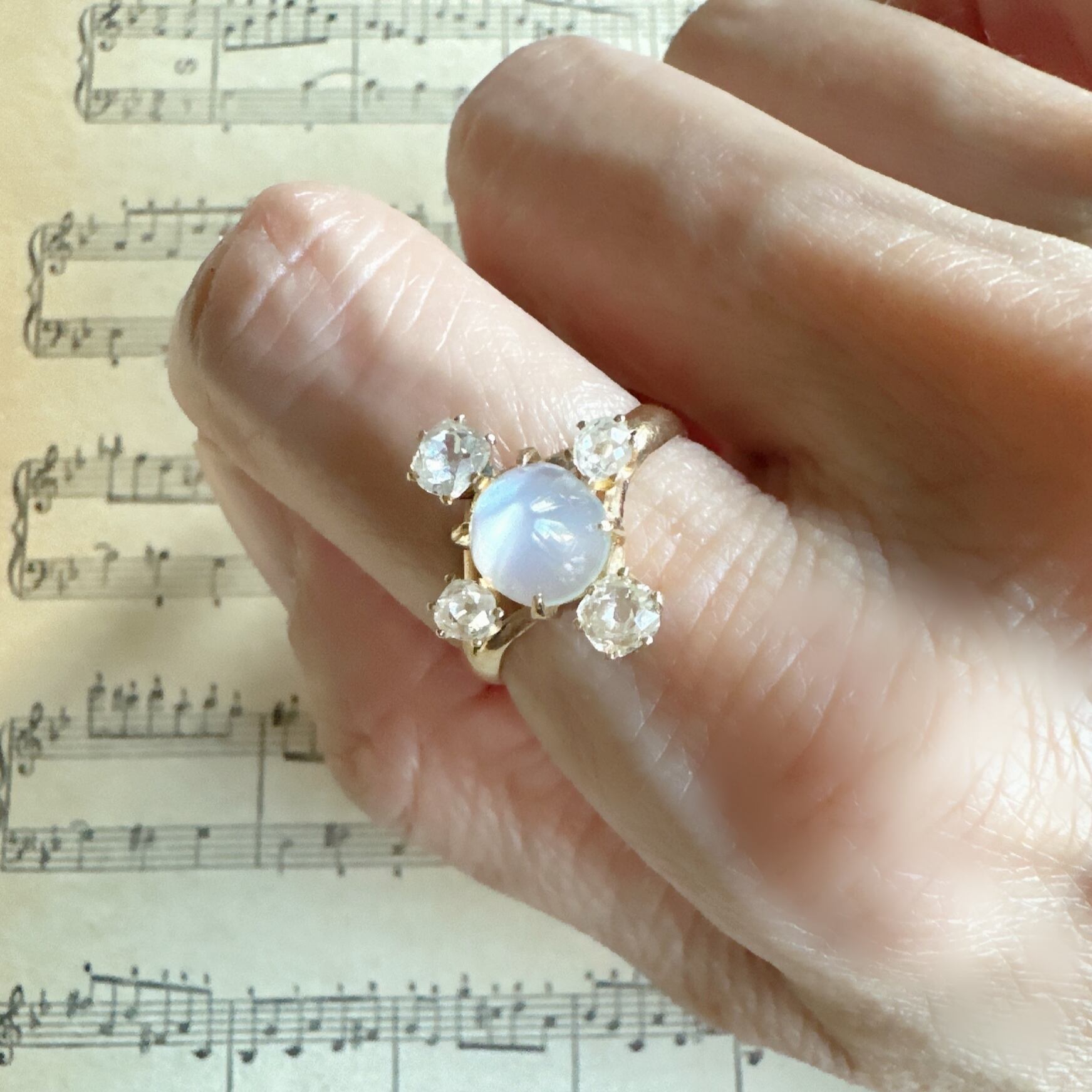 カボションムーンストーン&オールドマインカットダイヤモンドのヴィクトリアンリング