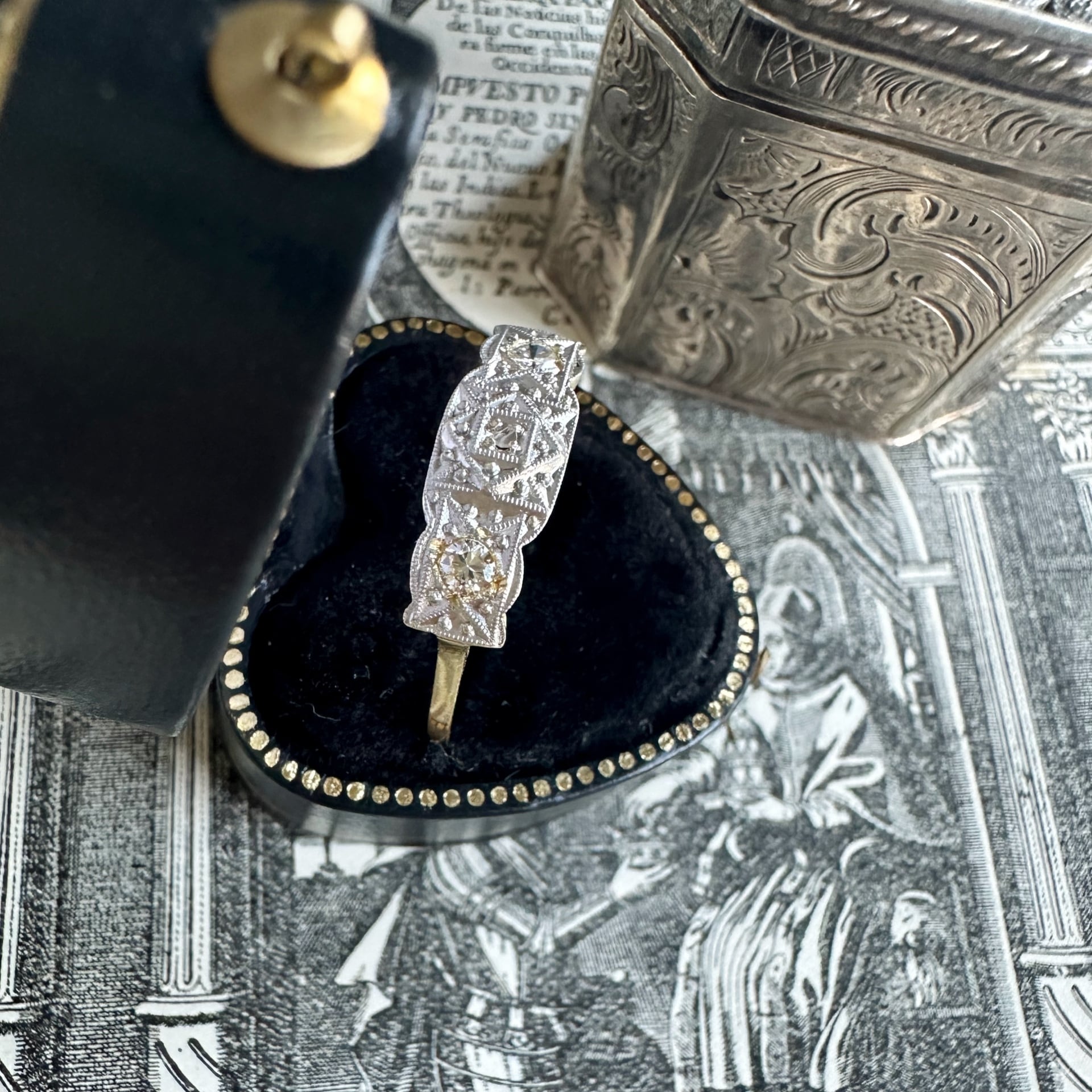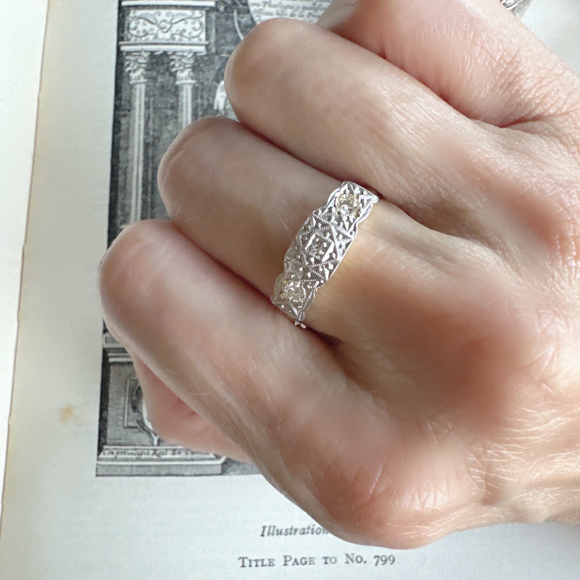 アラベスク模様がまるでスペインのアルハンブラ宮殿の壮麗な装飾を思い起こさせ、時を超えた美しさを感じさせるベルエポックの素敵なリング。