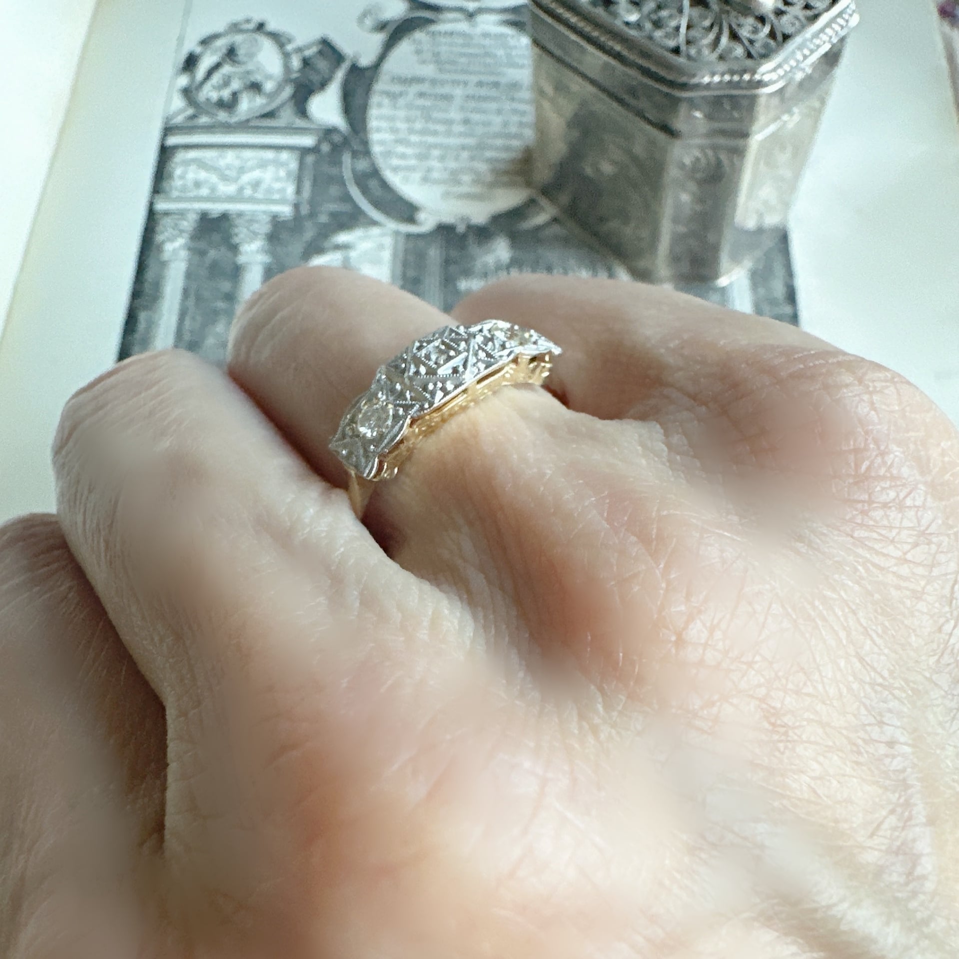 アラベスク模様のベルエポックダイヤモンドリング