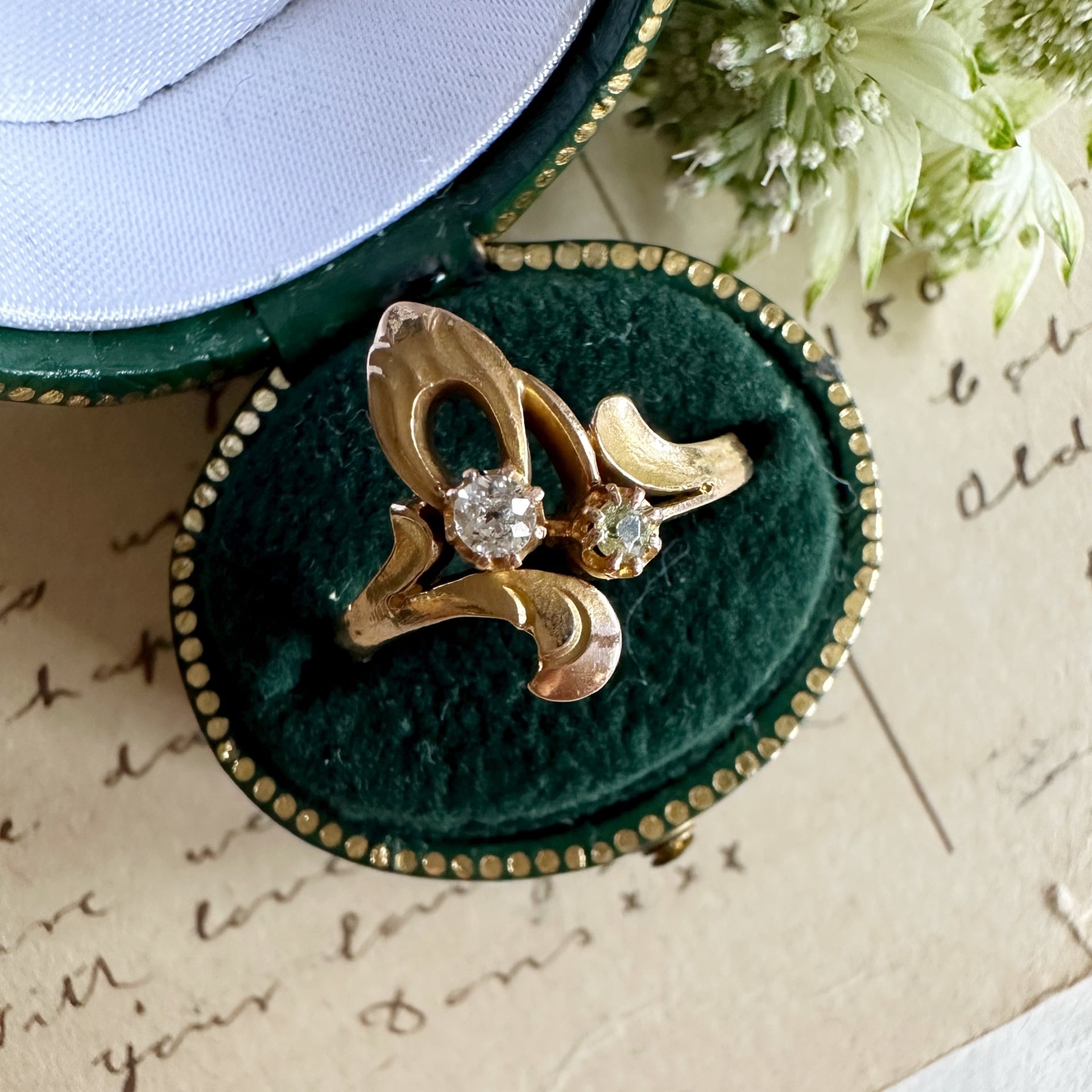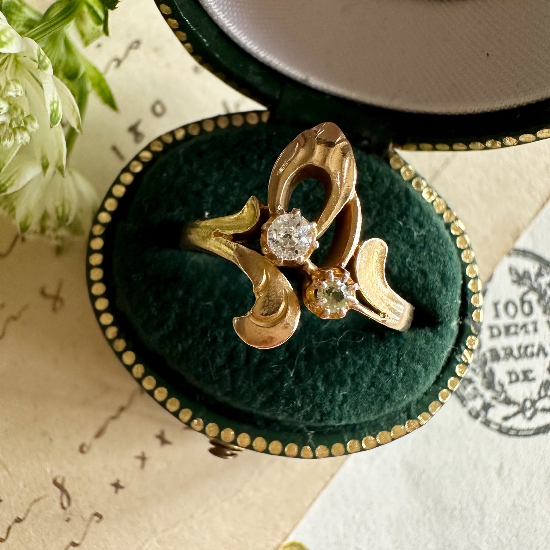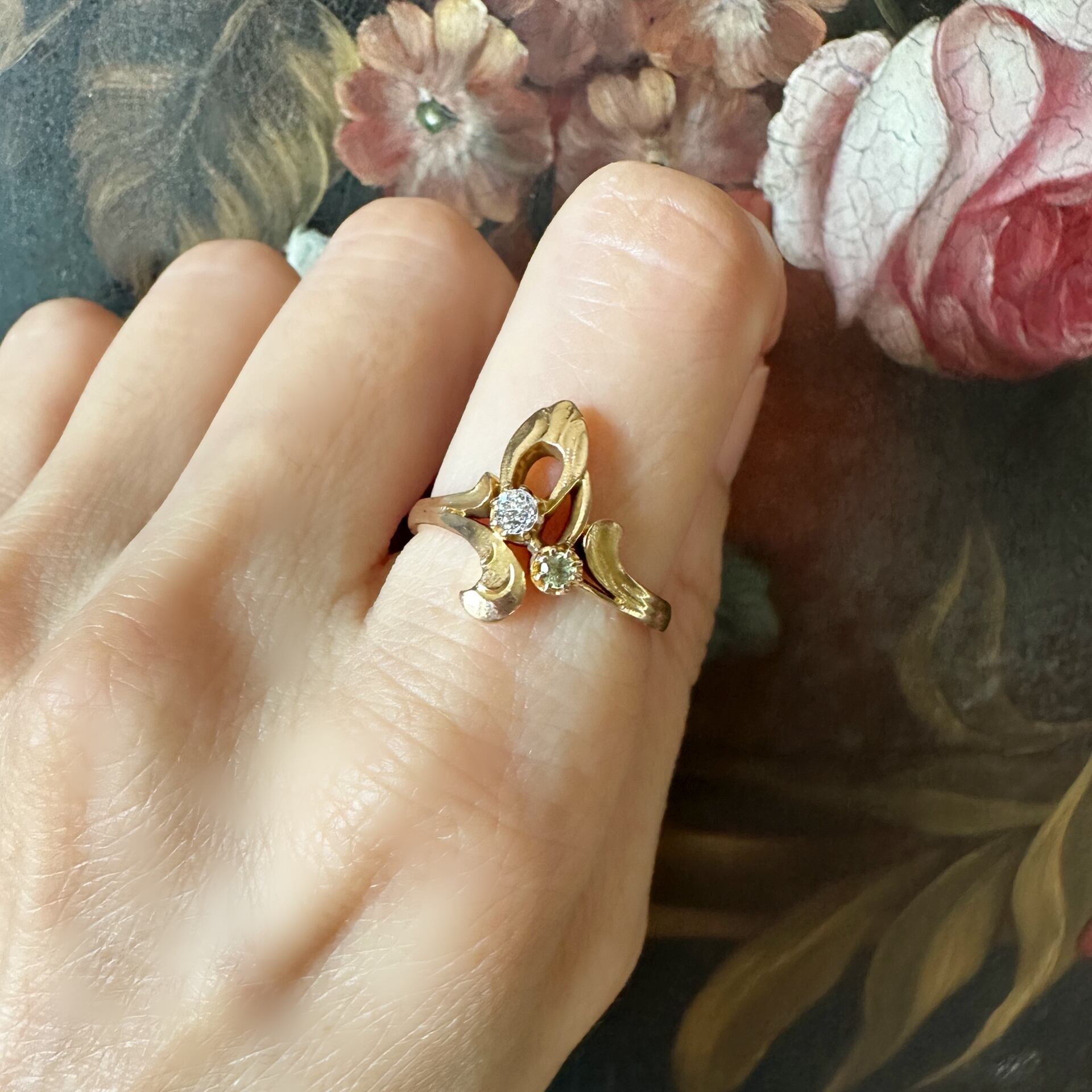 オールドカットダイヤモンド&デマントイドガーネットアールヌーヴォーリング