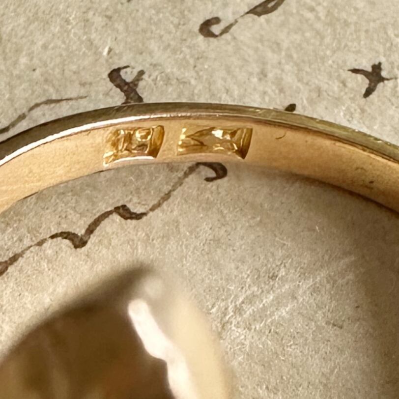 リングの内側の魚の刻印は、その詳細が不明なために謎めいていますが、このような刻印もアール・ヌーヴォー期に特有の「個性」を持つジュエリーによく見られる要素です。ジュエリーの製造者や工房の印を残すことは、作品そのものにさらなる物語を与え、身に着ける人に想像力を刺激します。