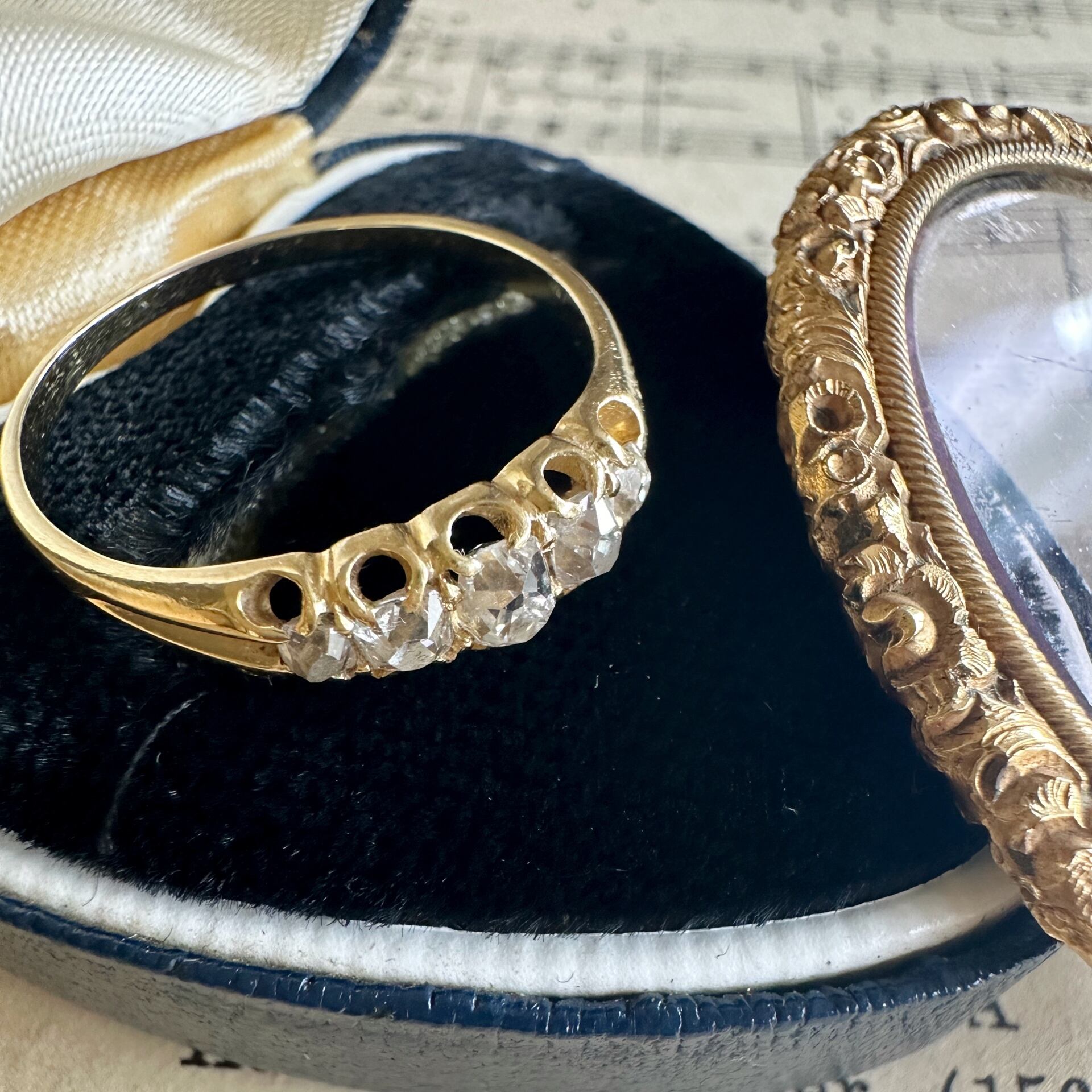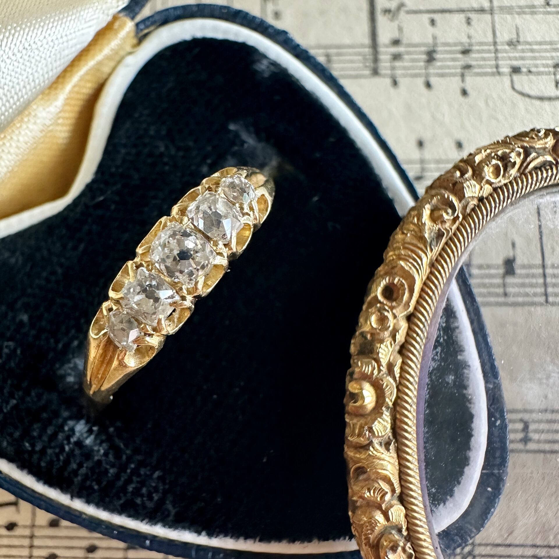 オールドマインカットダイヤモンドファイブストーンヴィクトリアンリング