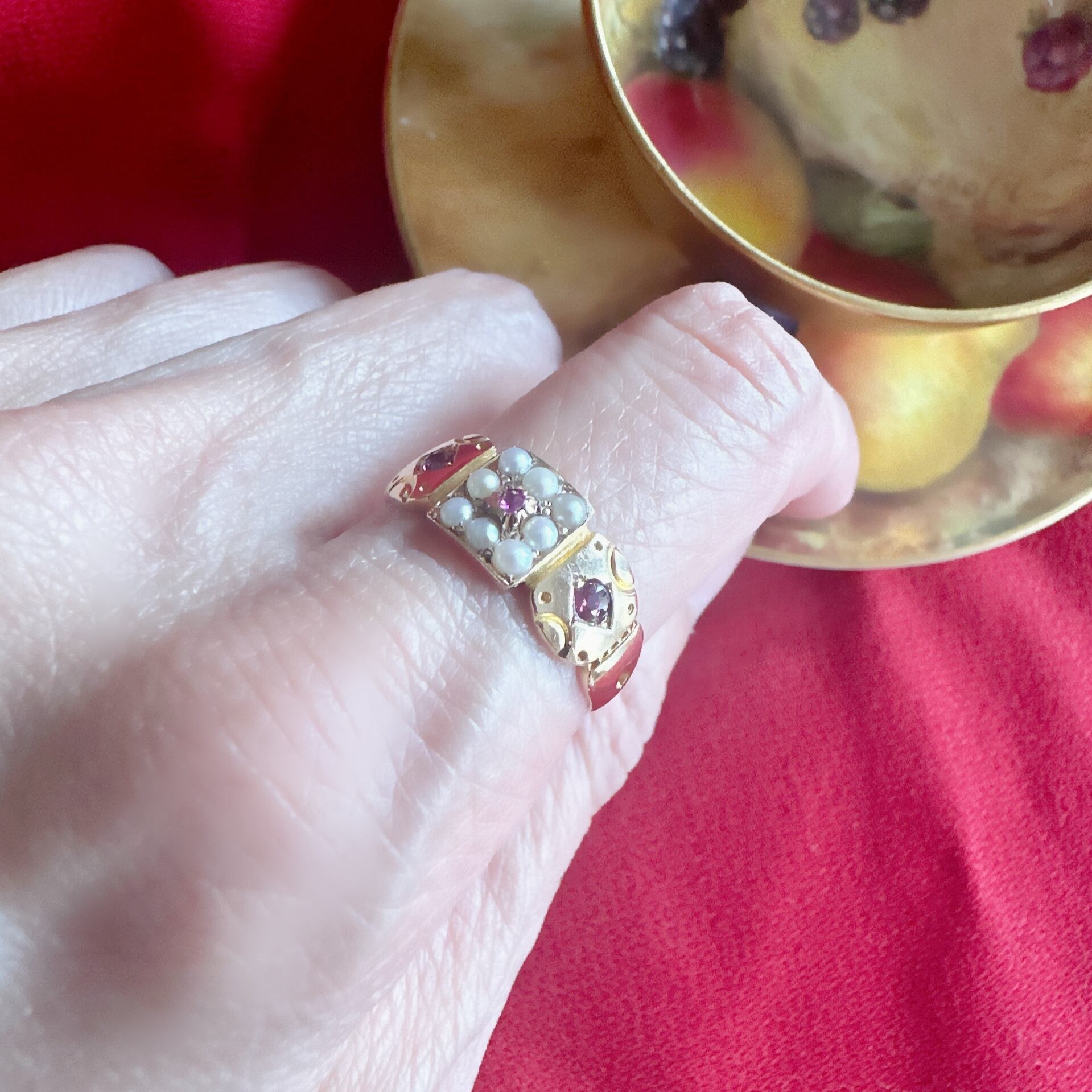 (U 様専用)ナチュラルハーフパール&ルビーのヴィクトリアンバンドリング