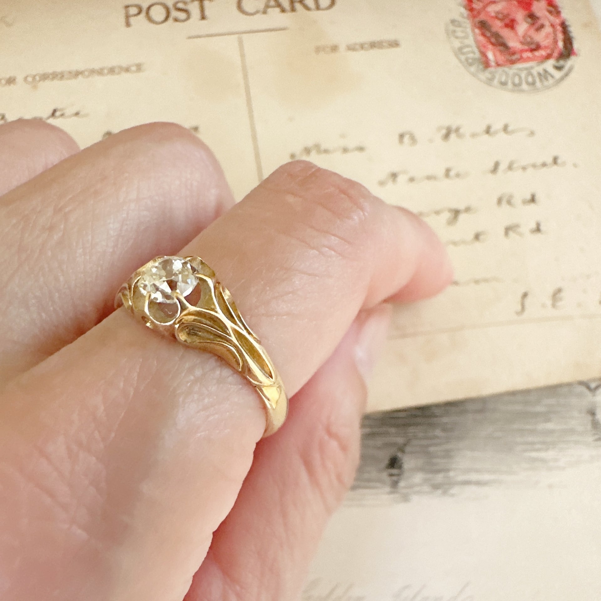 オールドマインカットダイヤモンドアールヌーヴォーリング