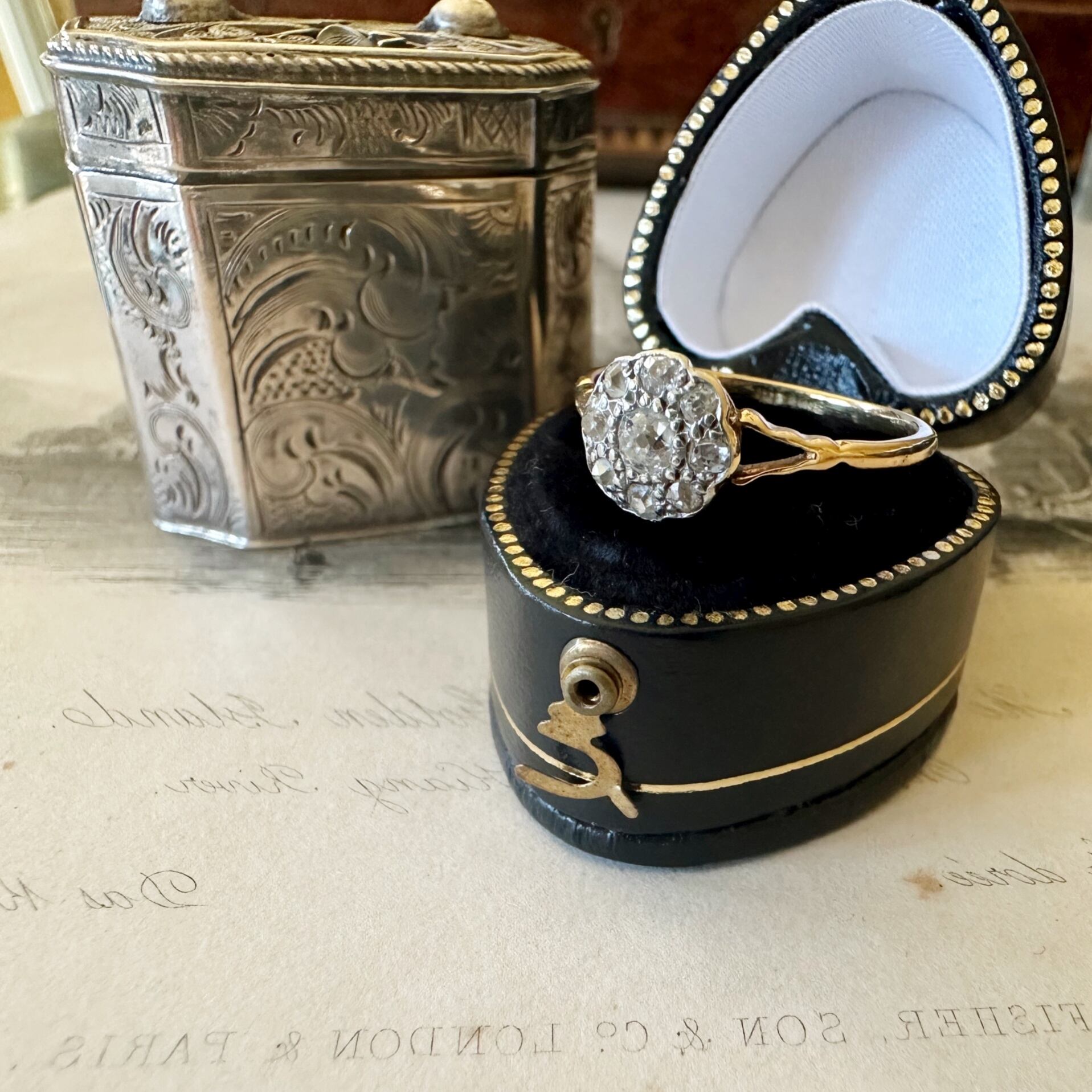 オールドマインカットだからこそ感じられる、唯一無二の煌めきと温かみ。百年以上の時を経て、このリングは今、貴女の手元で新たな物語を紡ぎます。その輝きが、貴女の日々に優しく寄り添い、永遠に咲き続けるデイジーとなることでしょう。