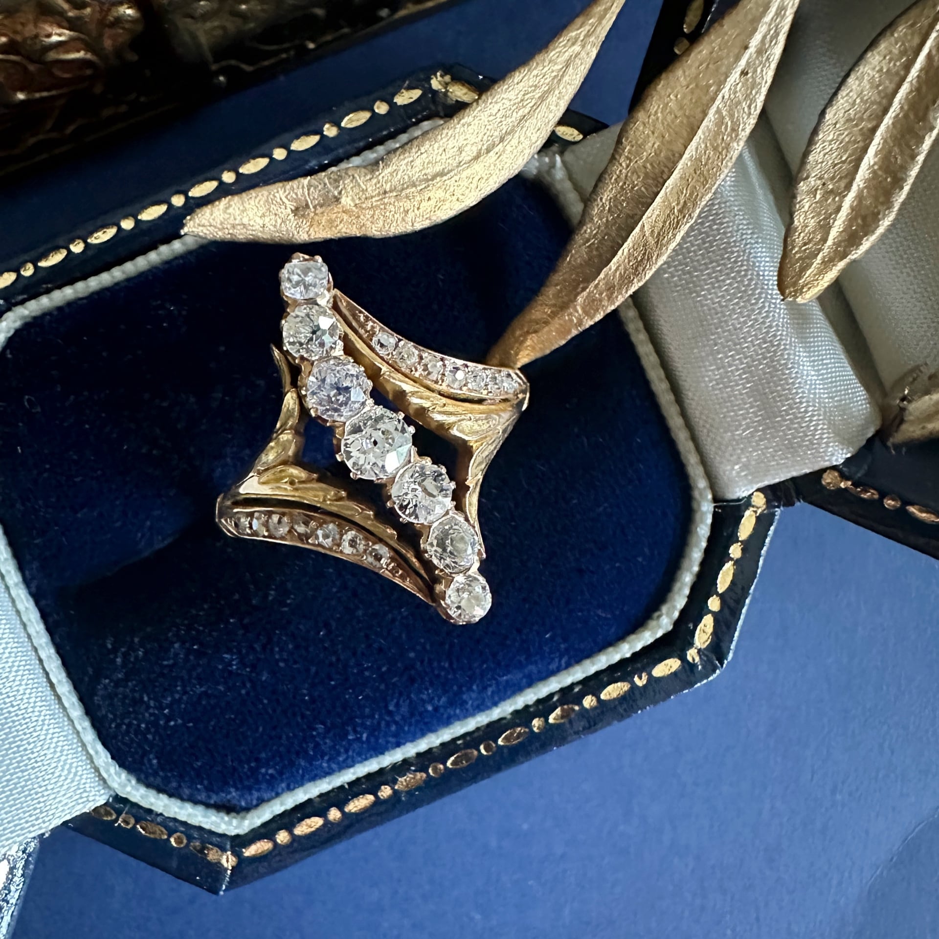 アールヌーヴォーオールドカットダイヤモンドセブンストーンアカンサスリング