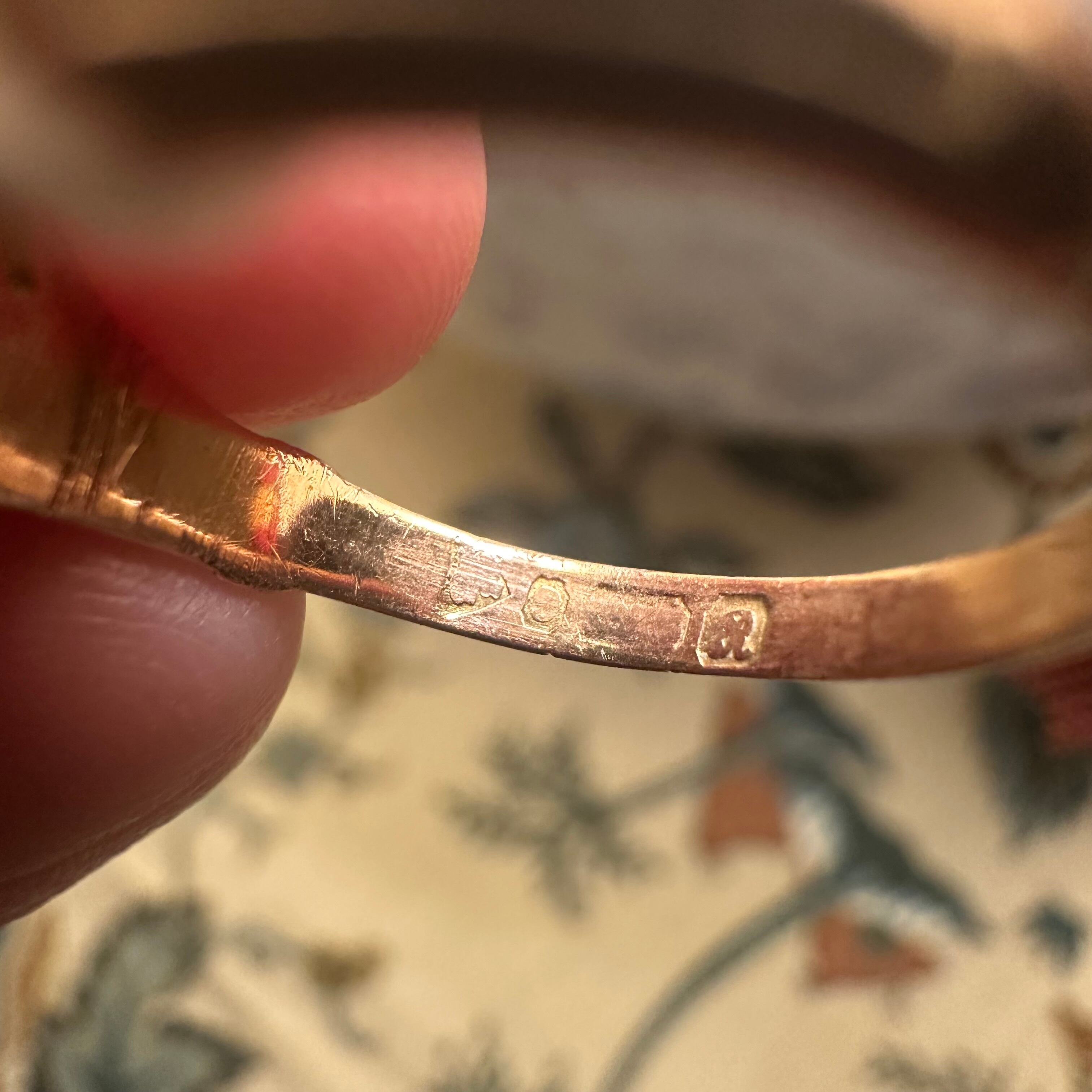 このリングはその中でも1919年という制作年が明確で、さらにチェスターのホールマークが歴史を証明しています。1950年以降のヴィンテージの物はみかけますが、こちらはアンティークになりますので、深みが違う事を感じとって頂けるでしょう。